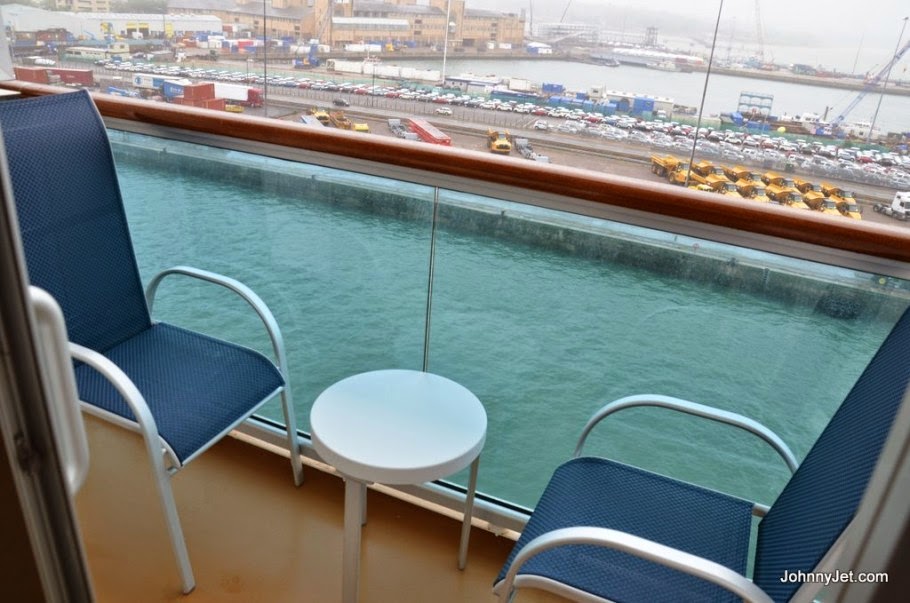 You are paying for a Veranda Stateroom, which implies that you will actual receive a usable balcony. Well, while the standard balcony (veranda) on the Celebrity Silhouette is a generous size with quality furniture, the Royal Princes balcony is hardly usable…especially if you want to gaze directly out to sea, a have your breakfast or do anything other than look at your partner, as the balcony is so narrow the chairs have to be placed sideways: