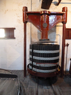 we entered the facility we saw on the right some vats that just had circulated some of the young wine-in-the-making in what is a very simple process: Open the bottom of the large stainless steel