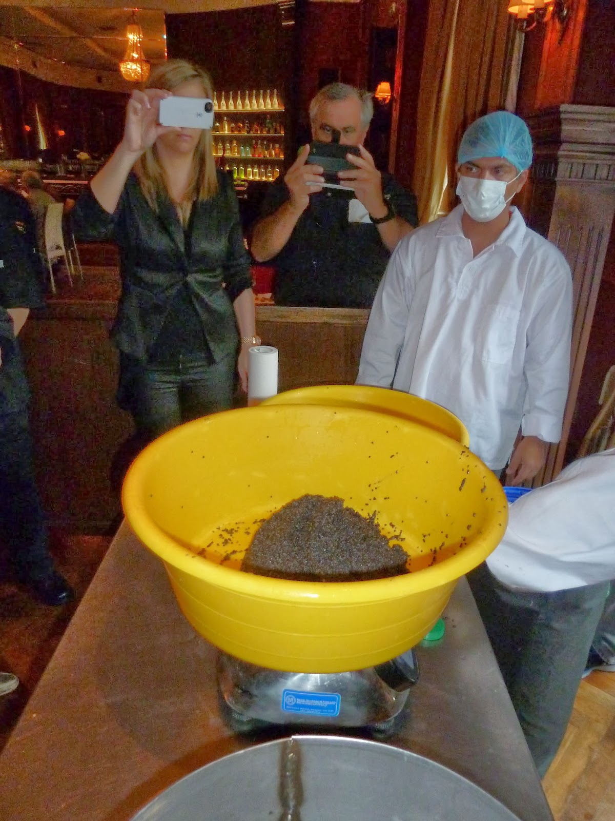Beginning the harvest of $12,000 of caviar. |