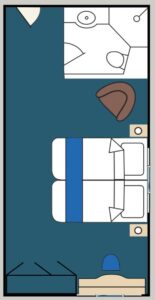 Premium Stateroom (194 square feet) has two large picture windows and a private bathroom.