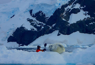 “Seals snort a greeting close to our dipping paddles” (c) Robert Engelstaff – January 2019 |