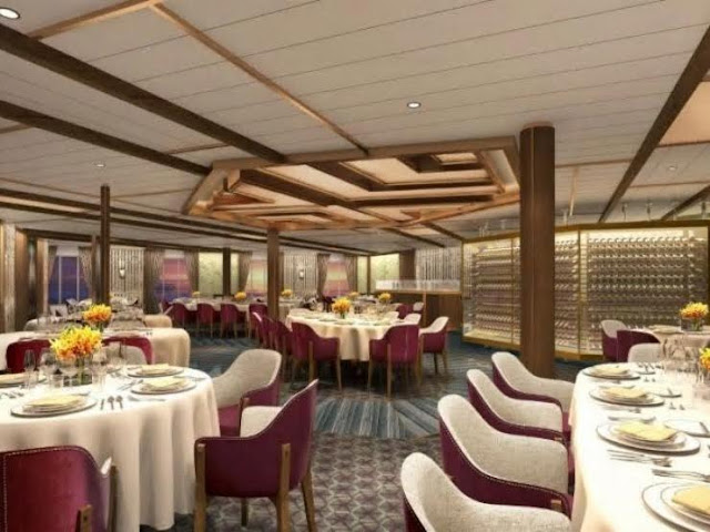 The Restaurant: As with all of Seabourn’s ships, The Restaurant is the main restaurant. While it will be more formal in style, it is not a “formal” experience; except on limited occasions. While it is more intimate than on her sister ships, you will note similarities as Adam Tihany works to blend familiar with the more yacht-like experience you will have on the Seabourn Venture.