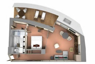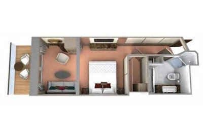 Wintergarden Suite: These two suites bi-level suites are located midship on Deck 7 (Suites 735, 736) with space totaling 1,044 sq. ft. (97 sq. m.) including a large veranda of 129 sq. ft. (12 sq. m.). These suites are clearly designed for a more inside experience than say the Signature Suites.