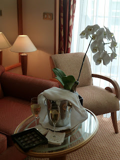 were greeted by a bottle of champagne, a nice box of chocolates and a huge