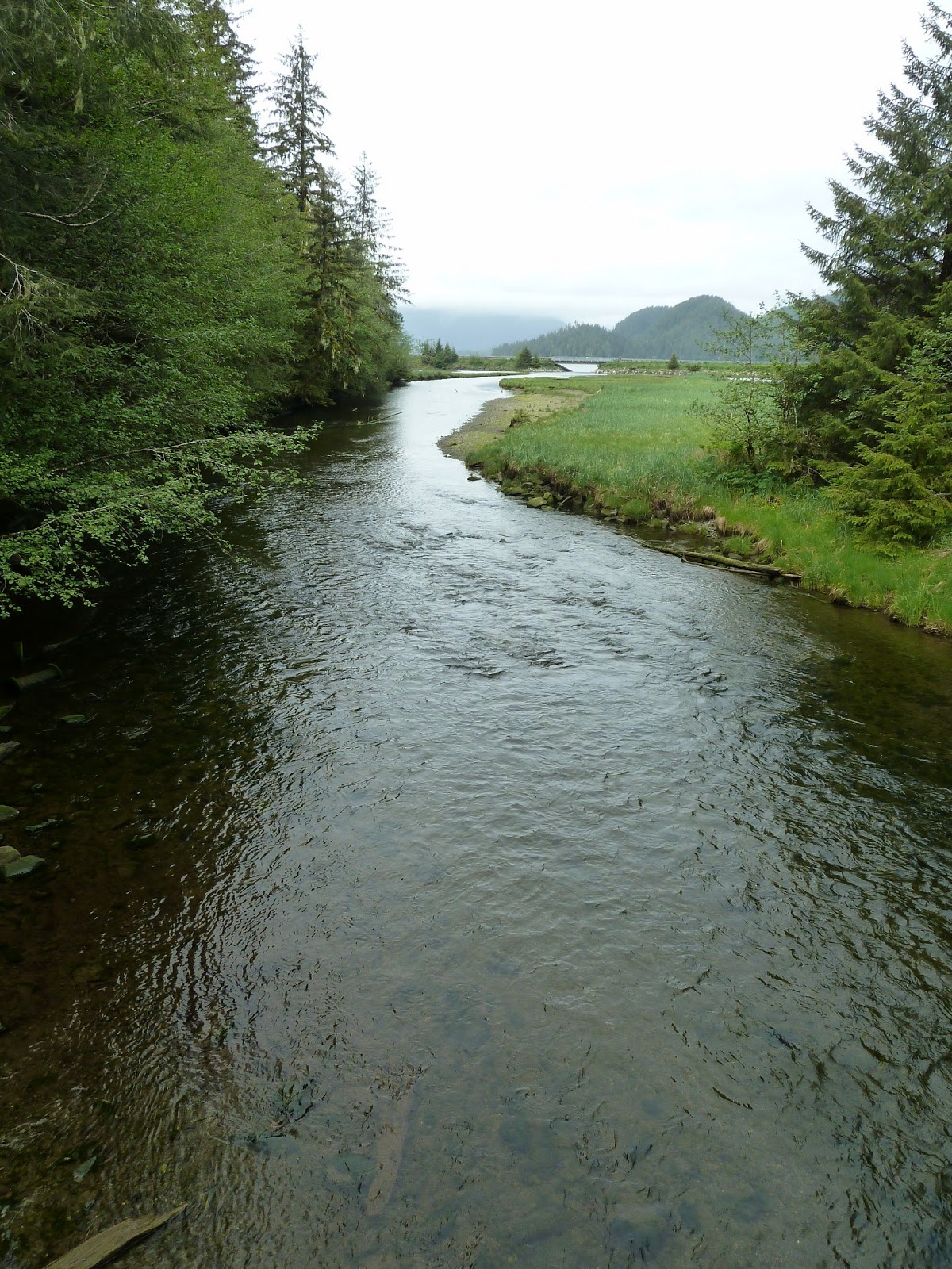 We then took a more leisurely mile or so walk/hike through marine, estuary and muskeg (peat bog) environments with some truly spectacular scenery…and with the sun breaking though just at the perfect time. (It was there I discovered that our very energetic guide who kept us moving at a good pace was 77 years old!)