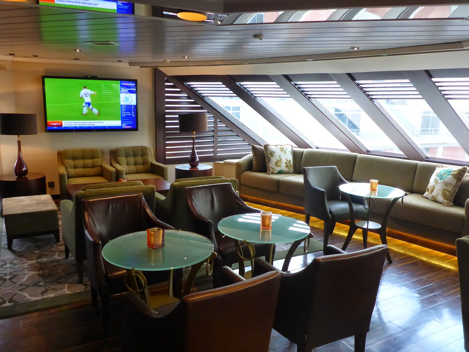 they are now set off to the port side. The bar itself remains pretty much as it was, but with a bit of leather and new bar stools similar to those in the Star Bar.